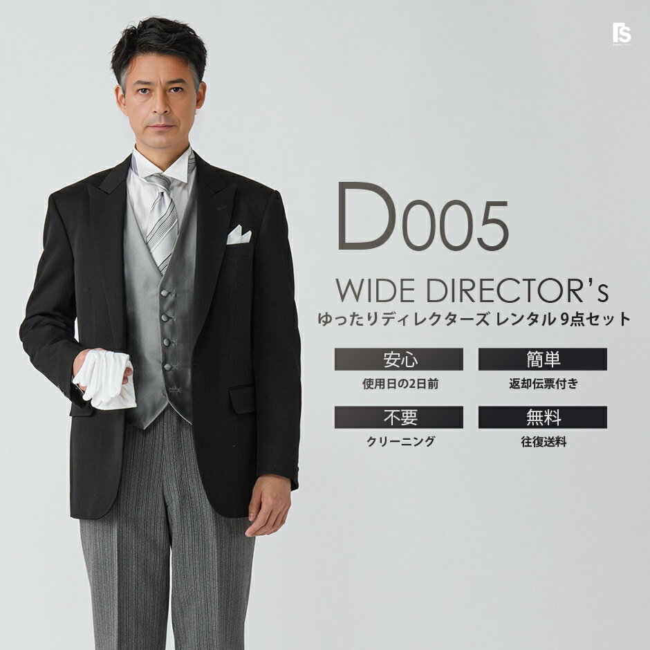 ディレクターズスーツ ゆったりD005【レンタル】セット9点 選べるネクタイ 試着 ◆4泊5日 往復送料無料 選べる袖丈・股下◆七五三 終業式 始業式 秋婚 結婚式