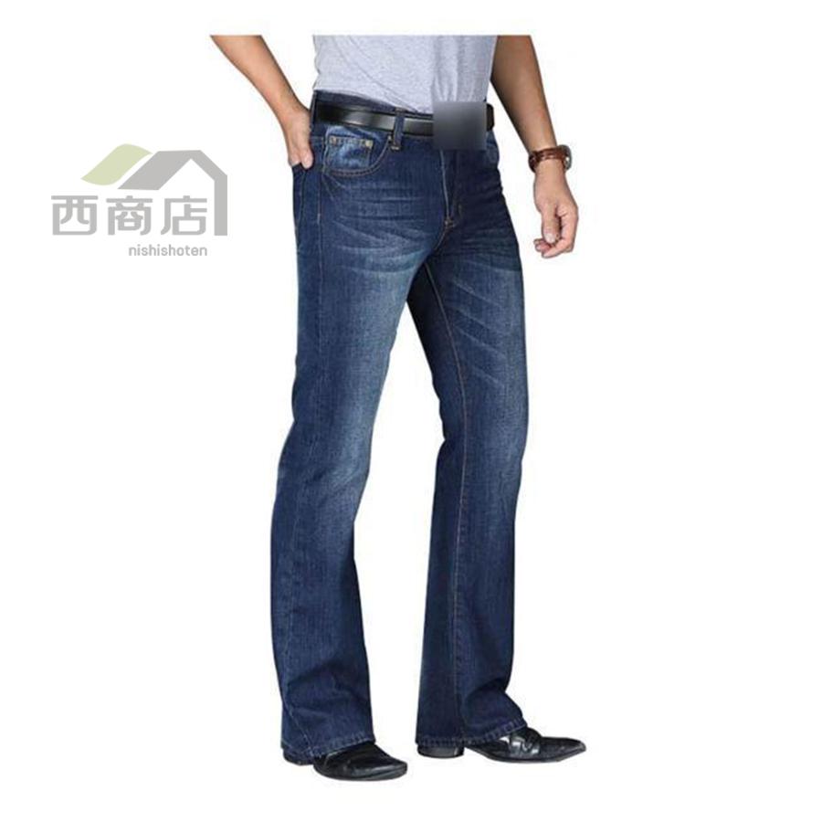 デニムパンツ メンズ 男性フレアジーンズブーツカットデニムパンツ快適な古典的な緩いカジュアルブルーのズボン