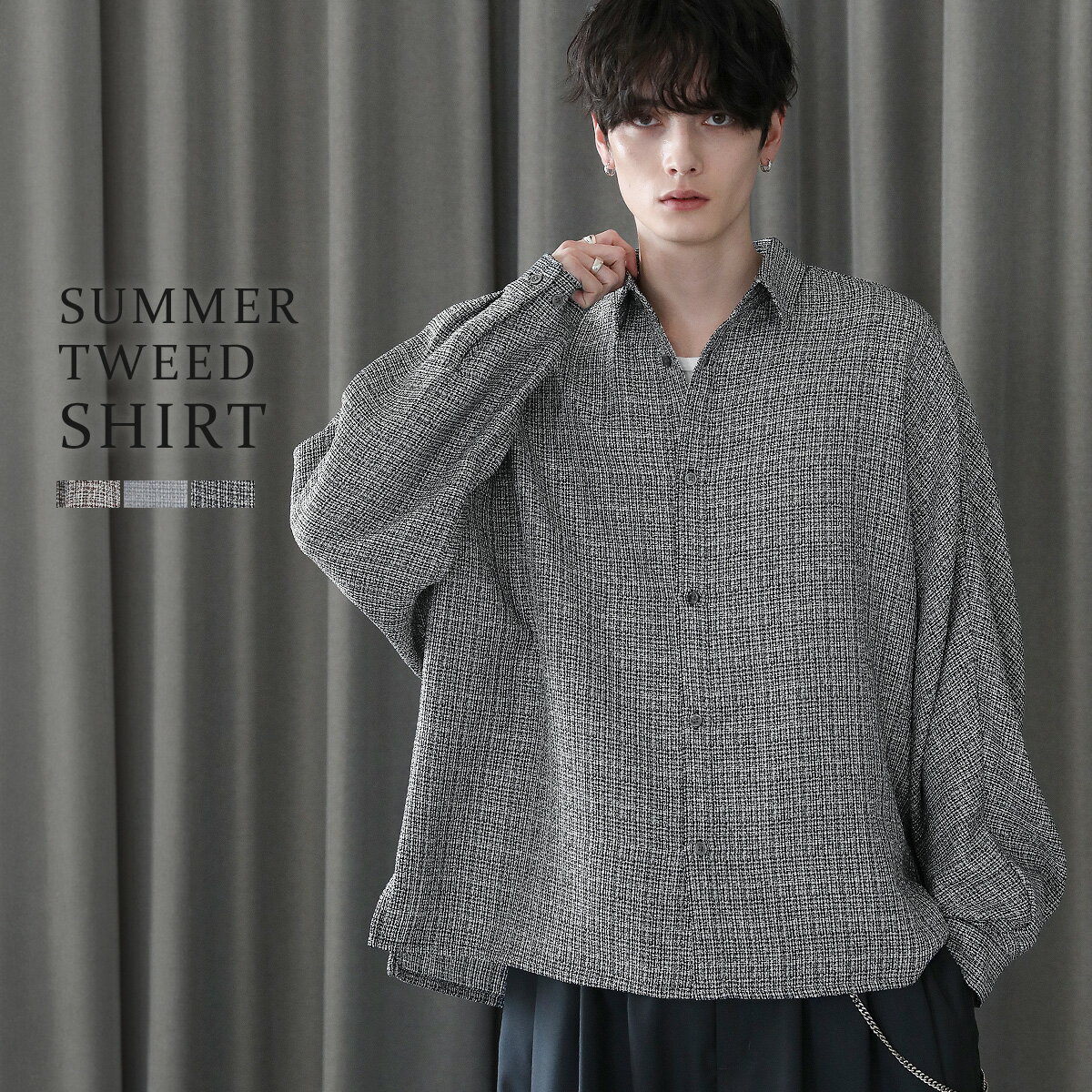 シャツ メンズ 長袖 サマー ツイード ワイド ドルマン ドレープ トップス トレンド S M L 春 春服 秋 秋服 韓国