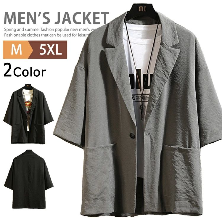ゴ クールビズ アウター シャツジャケット 1ツボタン カジュアル スーツジャケット テーラードジャケット おしゃれ 7分袖 メンズ