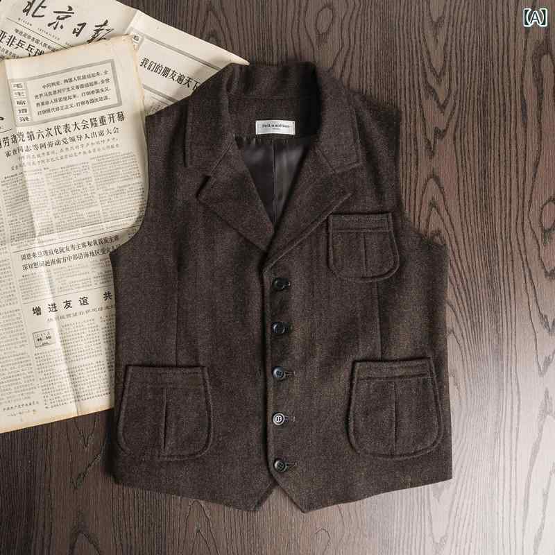 ベスト メンズ 男性用 テーラードカラー ツイード ヘリンボーン柄 秋冬 裏起毛 コットン スリムフィット 細身 欧米風 レトロ カジュアル 普段使い レッドブラウン